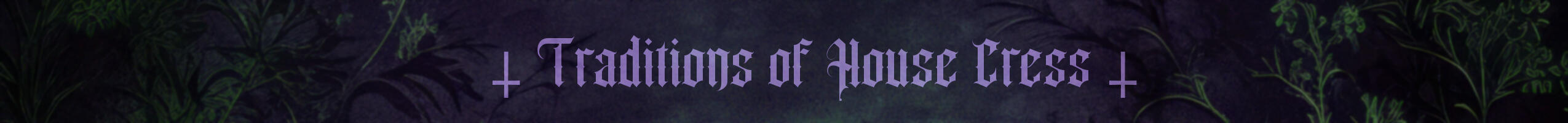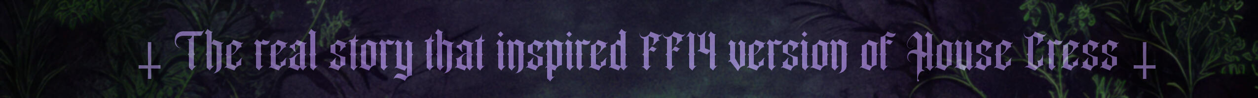 Here you will find a bit of a compendium of House Cress in FF14 and how it came to be. You will find inspiration of a real life story, the application of the story into roleplay pertaining to House Cress in FFXIV, indepth information about House Cress and their affiliation with House Blackheart, curses, traditions and more!